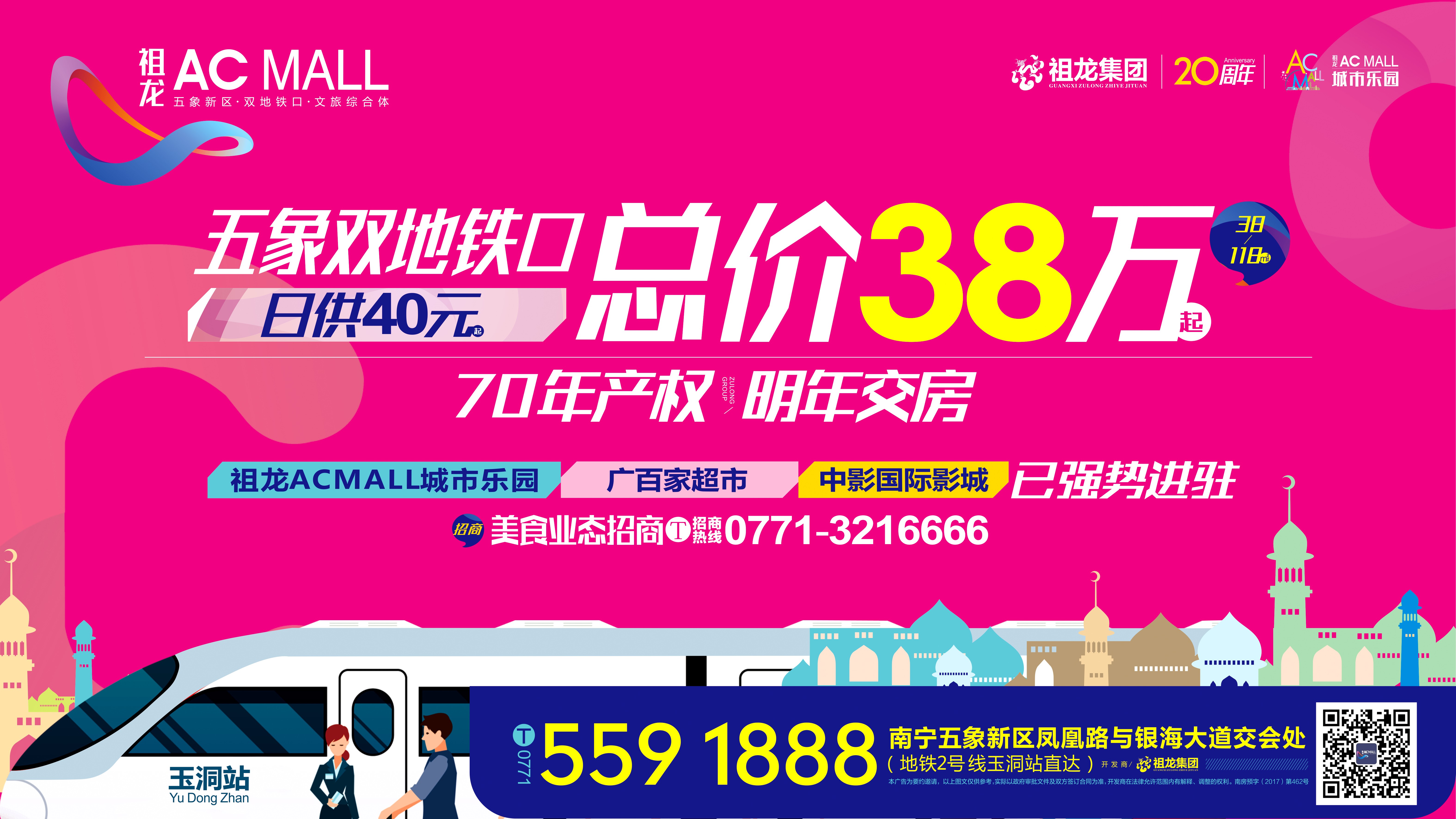 值此20周年之际,祖龙ACMALL感恩全城推出老介新尊享20套特惠房,新客户全款购房立减500元/㎡,按揭购房立减400元/㎡,总价38万起让您轻松安家五象双地铁口!